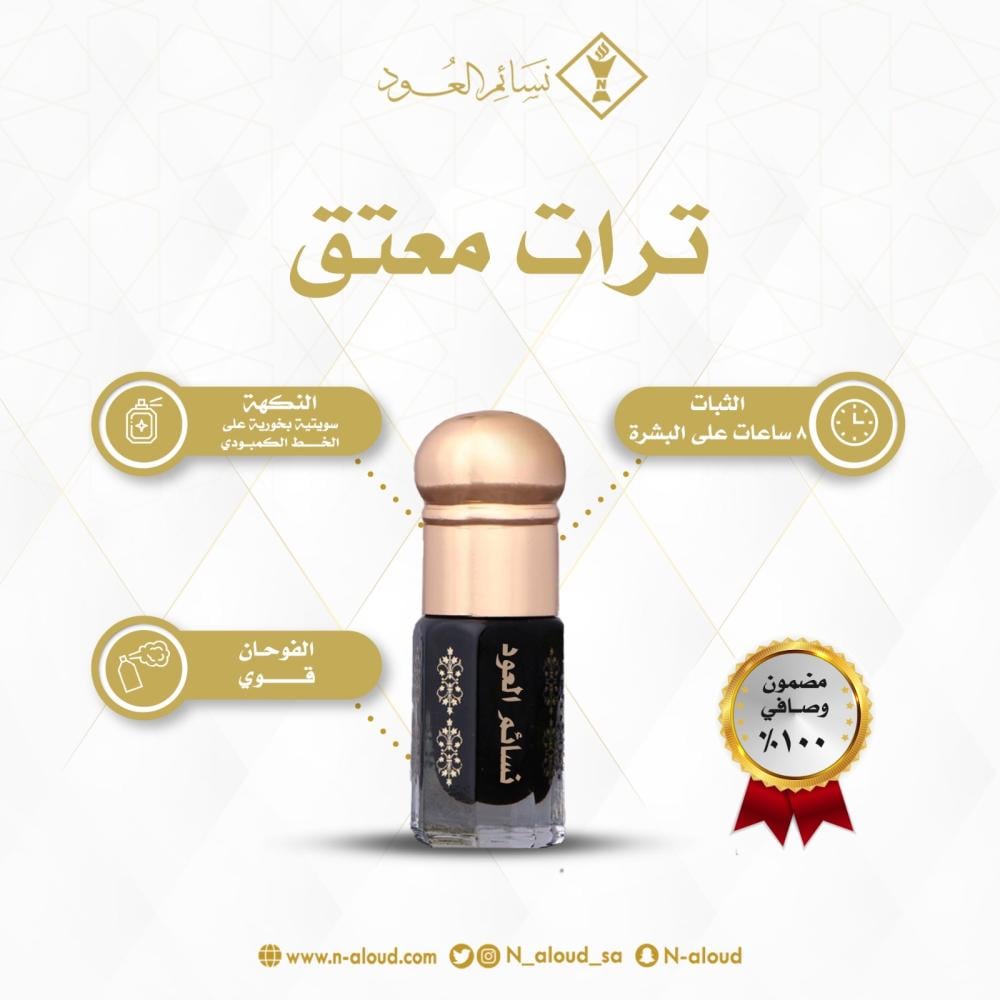 دهن عود ترات معتق، ذو نكهة سويتية بخورية مقاربة لنكهة العود الكمبودي، فوحان عالي وثبات ممتاز يصل إلى 8 ساعات على البشرة.
