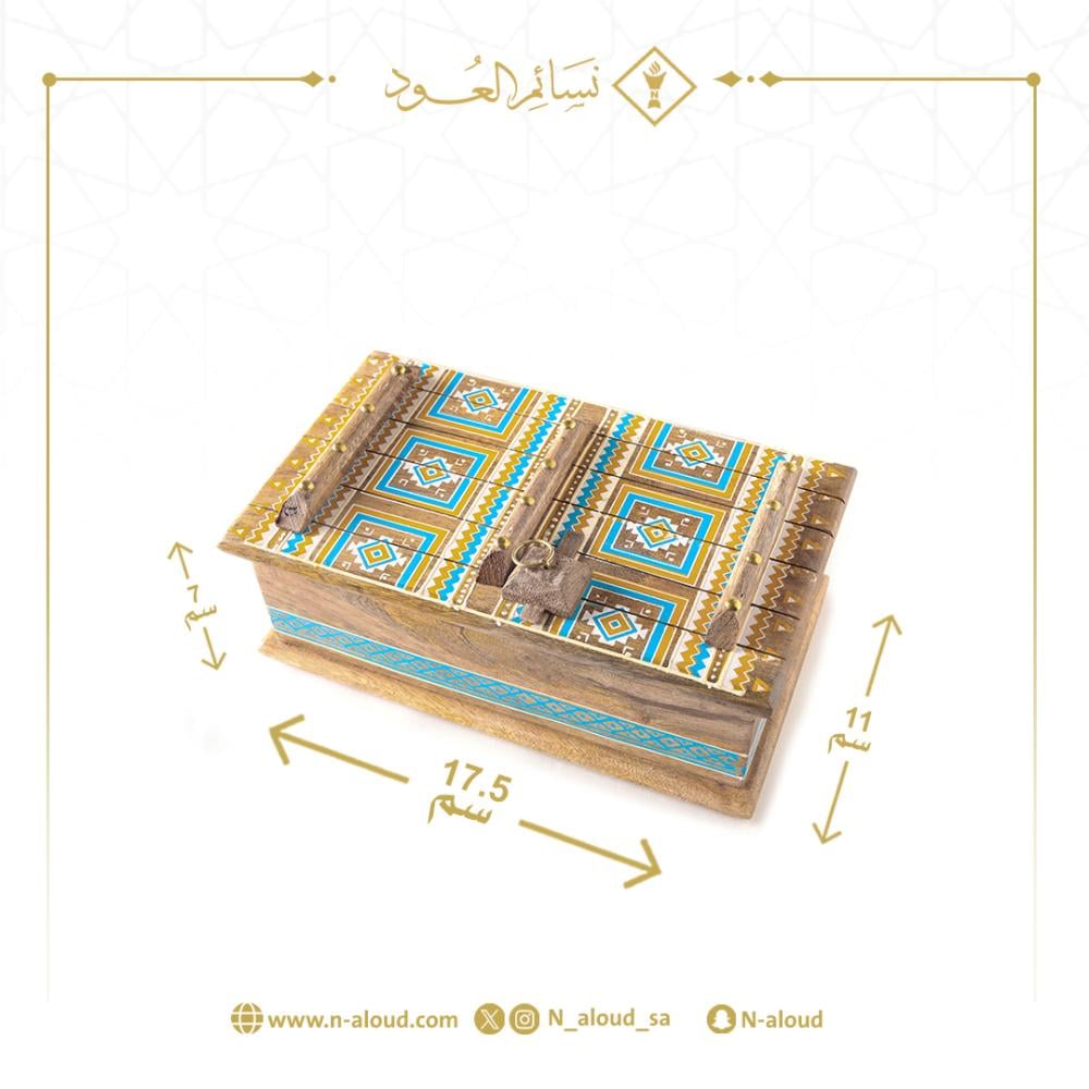صندوق خشبي بتصميم تراثي مستوحى من الأبواب النجدية العريقة، مثالي لحفظ العود والمقتنيات الثمينة.