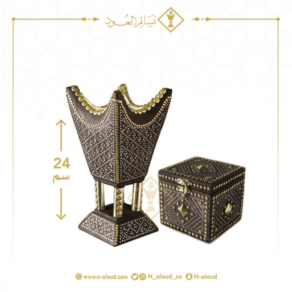 صندوق تراثي فاخر يحتوي على مبخرة حائلية ملكية رشم مع علبة عود.