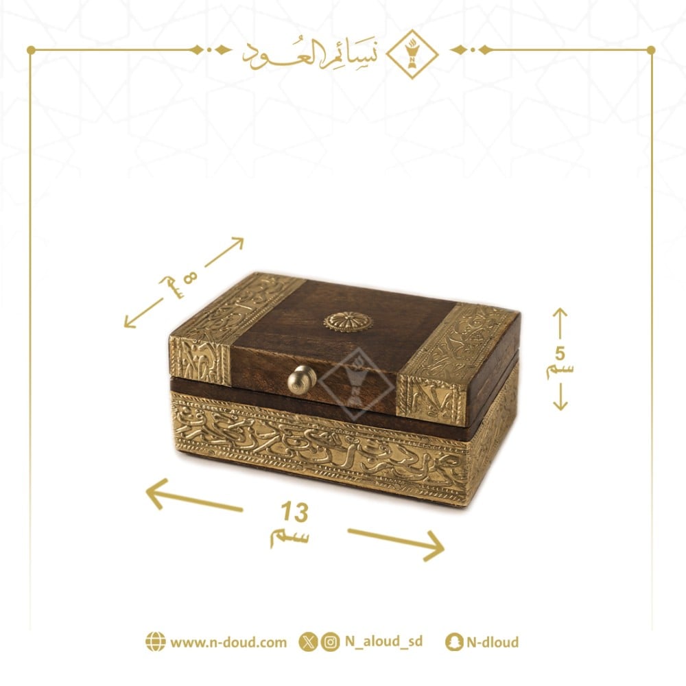 صندوق خشبي بنقوش نحاسية، مناسب لحفظ العود والمقتنيات الثمينة.