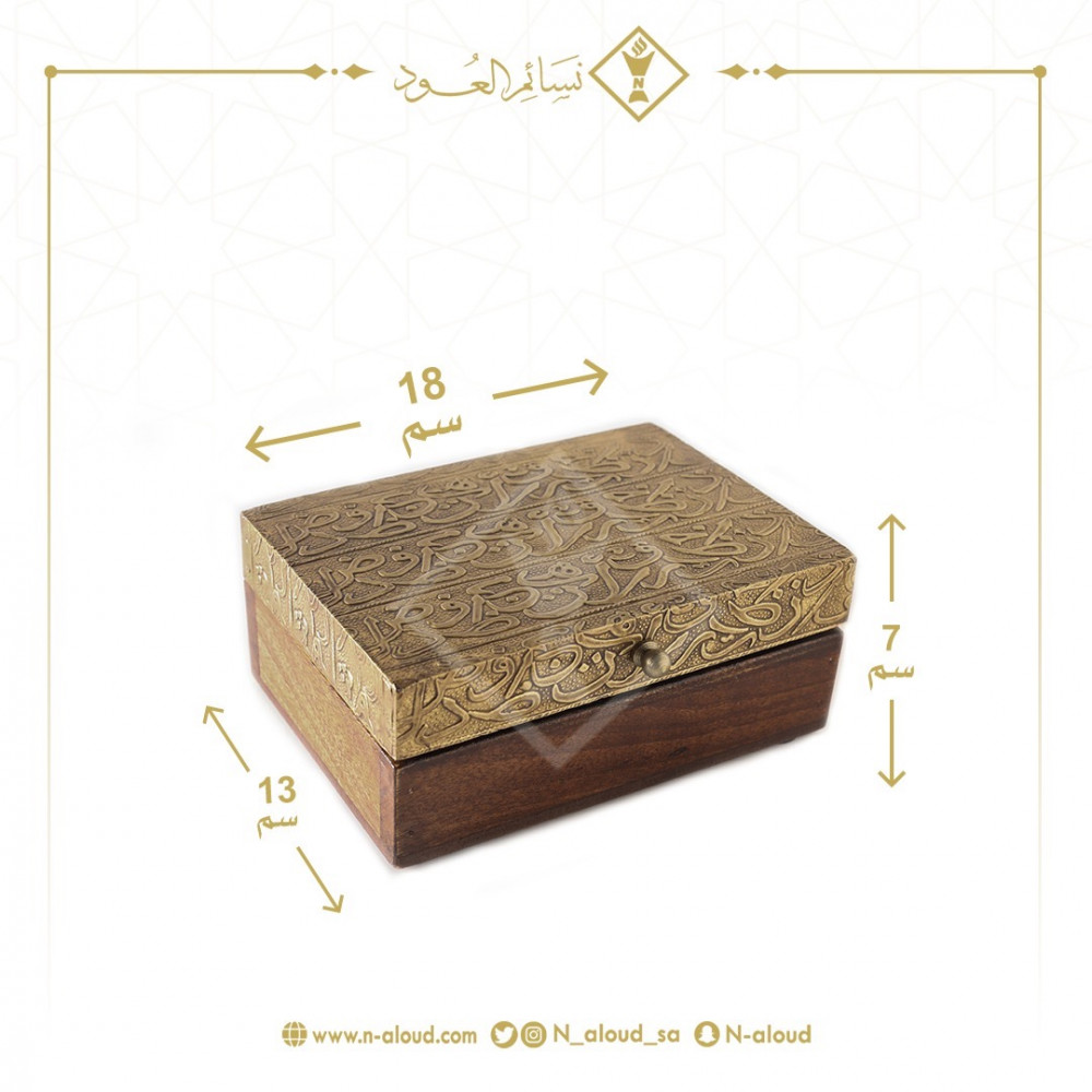صندوق خشبي بنقوش نحاسية، مناسب لحفظ العود والمقتنيات الثمينة.