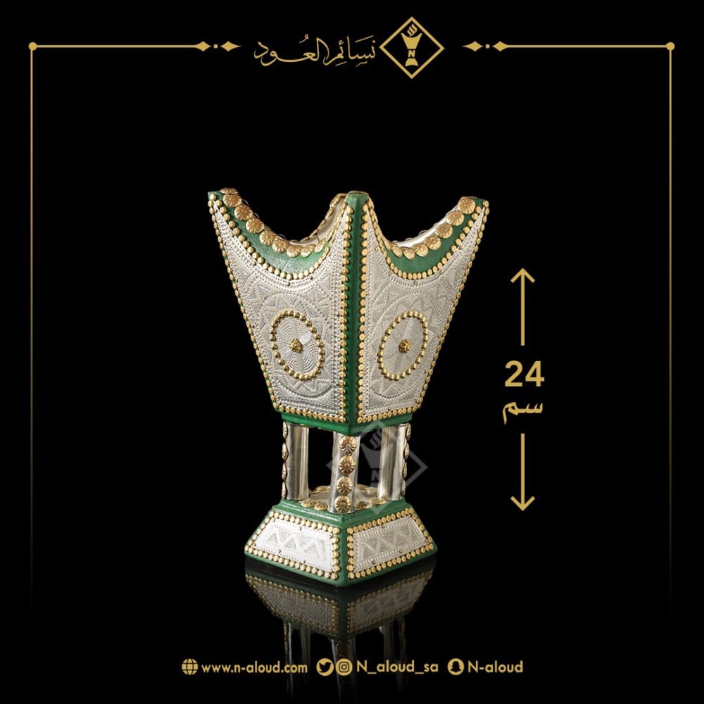 مبخرة حايلية طراز ملكي فاخر مصنوعة من خشب أثل ناشف مكسية بصاج ألمنيوم، نحت يدوي متقن، تصنيع خاص بنسائم العود.