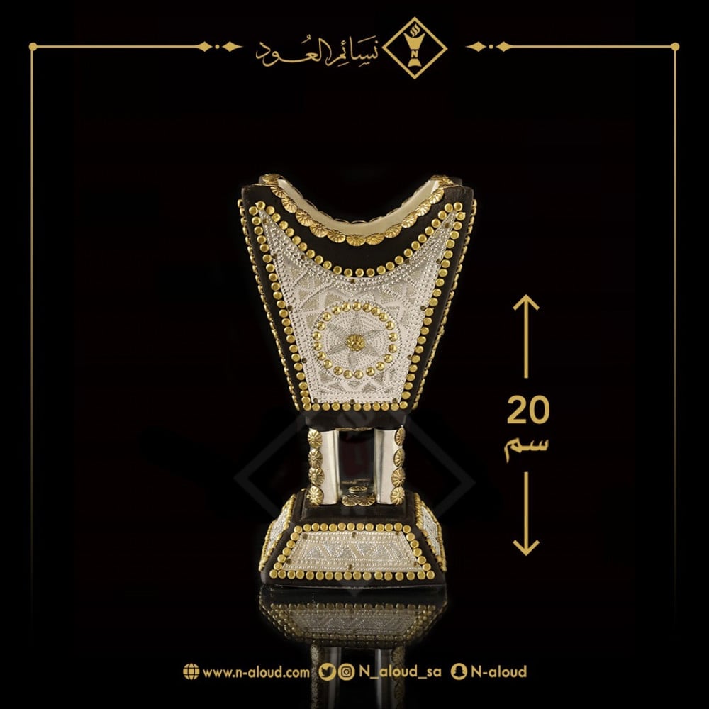 مبخرة ملكية فاخرة مصنوعة من خشب أثل ناشف مكسية بصاج ألمنيوم، نحت يدوي متقن، تصنيع خاص بنسائم العود.
