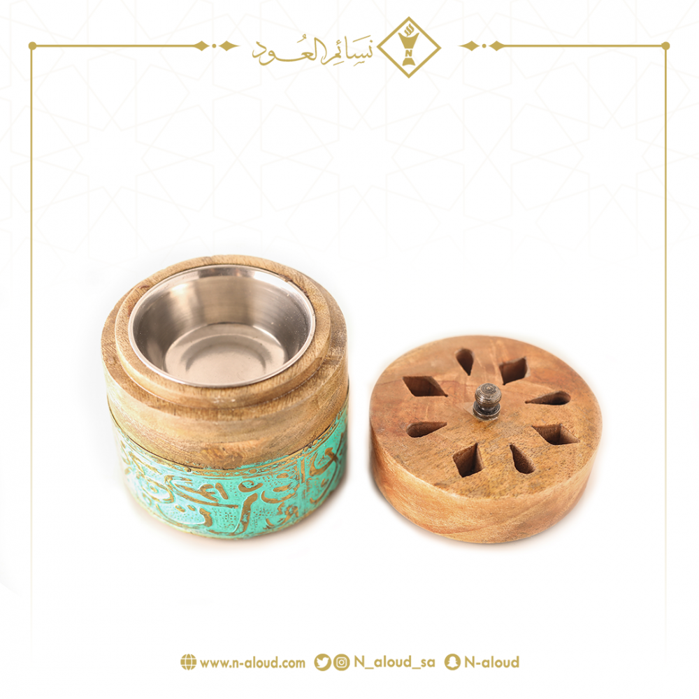 مبخرة هندية دائرية مقاس وسط بارتفاع 10 سم مزخرفة بالحروف العربية.