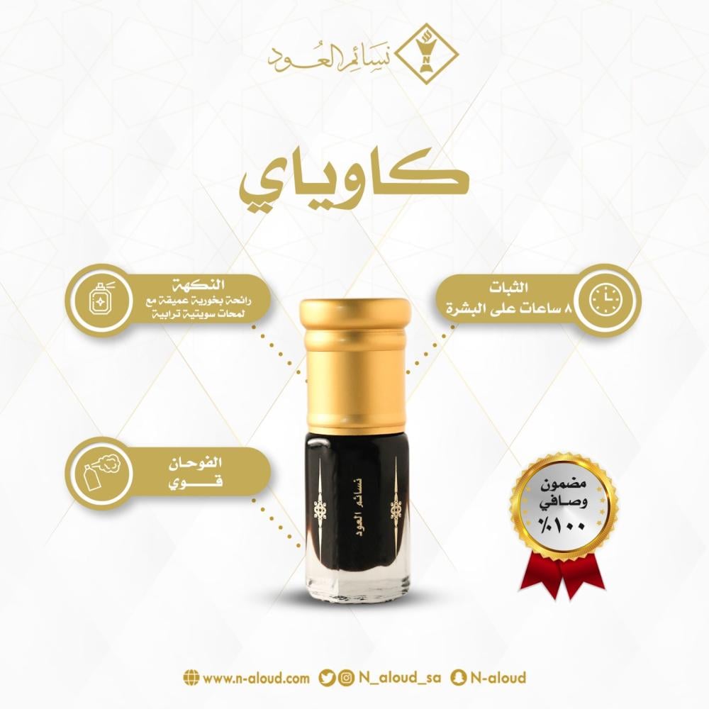 دهن عود كاوياي، تم تقطير هذا الدهن من أشجار جبل كاوياي المجاور لمنطقة براشين، رائحة بخورية عميقة مع لمحات سويتية ترابية، فوحان قوي وثبات مميز يصل إلى 8 ساعات على الجلد ولا يقل عن يومين على الملابس.