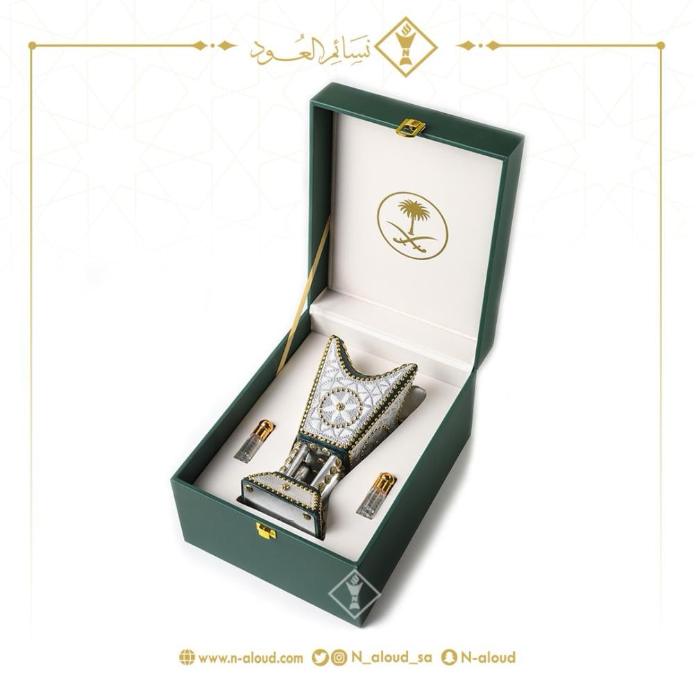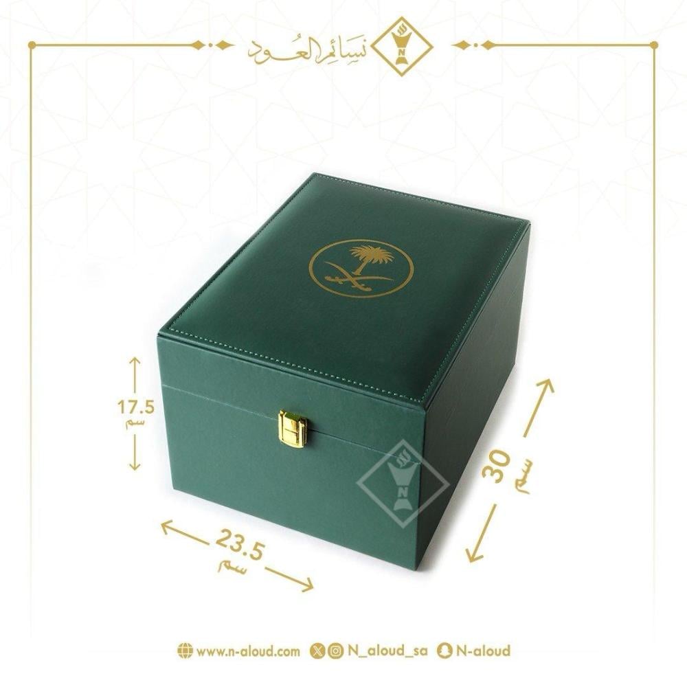 شنطة إهداء راقية مصنوعة من الجلد الإيطالي الفاخر 🇮🇹 تحتوي على مبخرة ملكية مقاس وسط (ارتفاع 24 سم) بالإضافة إلى ربعين تولة.